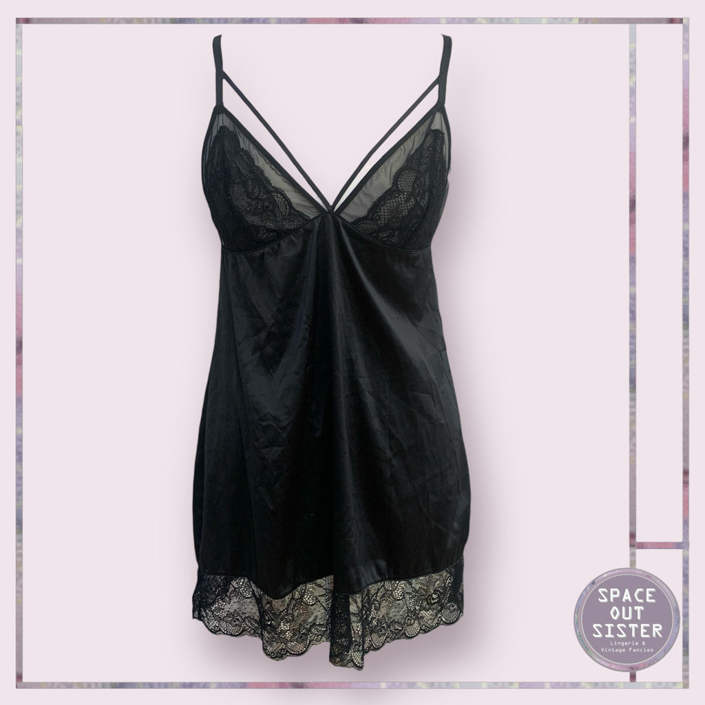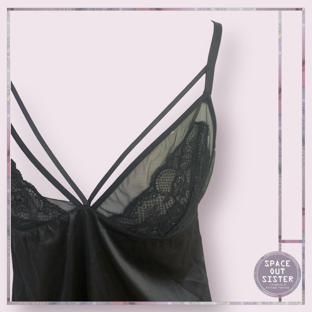 Discover the perfect balance of fun and elegance with our Sparkle Mini Slip Dress. This black dress features a cutout bust and sequined cups for a touch of sparkle. The adjustable straps provide a customizable fit, while the lace hemline adds a delicate touch.