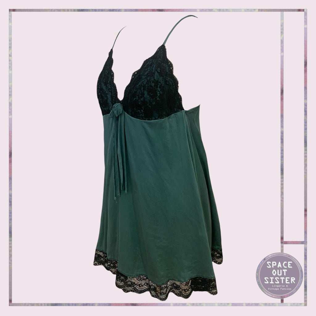 Experience luxury and elegance with the Pre-Loved Myla Silk Nightdress. Crafted with soft forest green silk and delicate spaghetti straps, this nightdress exudes comfort and sophistication. The black lace overlay on the bust adds a touch of glamour. Sleep in style and pamper yourself with this beautiful piece from Myla. As seen, some evidence of wear on each strap.